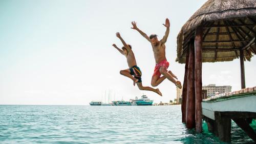The resort offers two free-form pools, tennis courts, gym, beach massage service, a mini market, bicycles, sailboats, travel agency, car rental and an activities program for children and adults. Enjoy La Palapa beachfront restaurant, The Italian Trattoria and Sports Bar, pool bars, express take-out food counter pizza delivery and room service. A complimentary guest shuttle bus between other Cancun Royal Resorts is available. The resort purifies its own water.